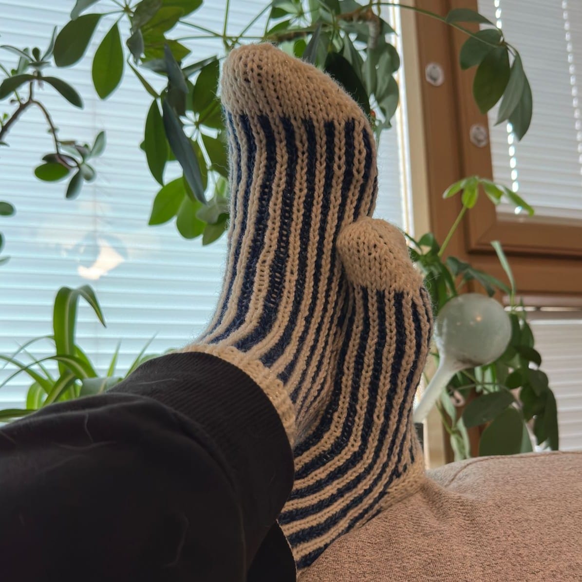 Itse tehtyjen sukkien vetäiseminen jalkaan on mahdollista myös sinulle. Usko pois. ☺️